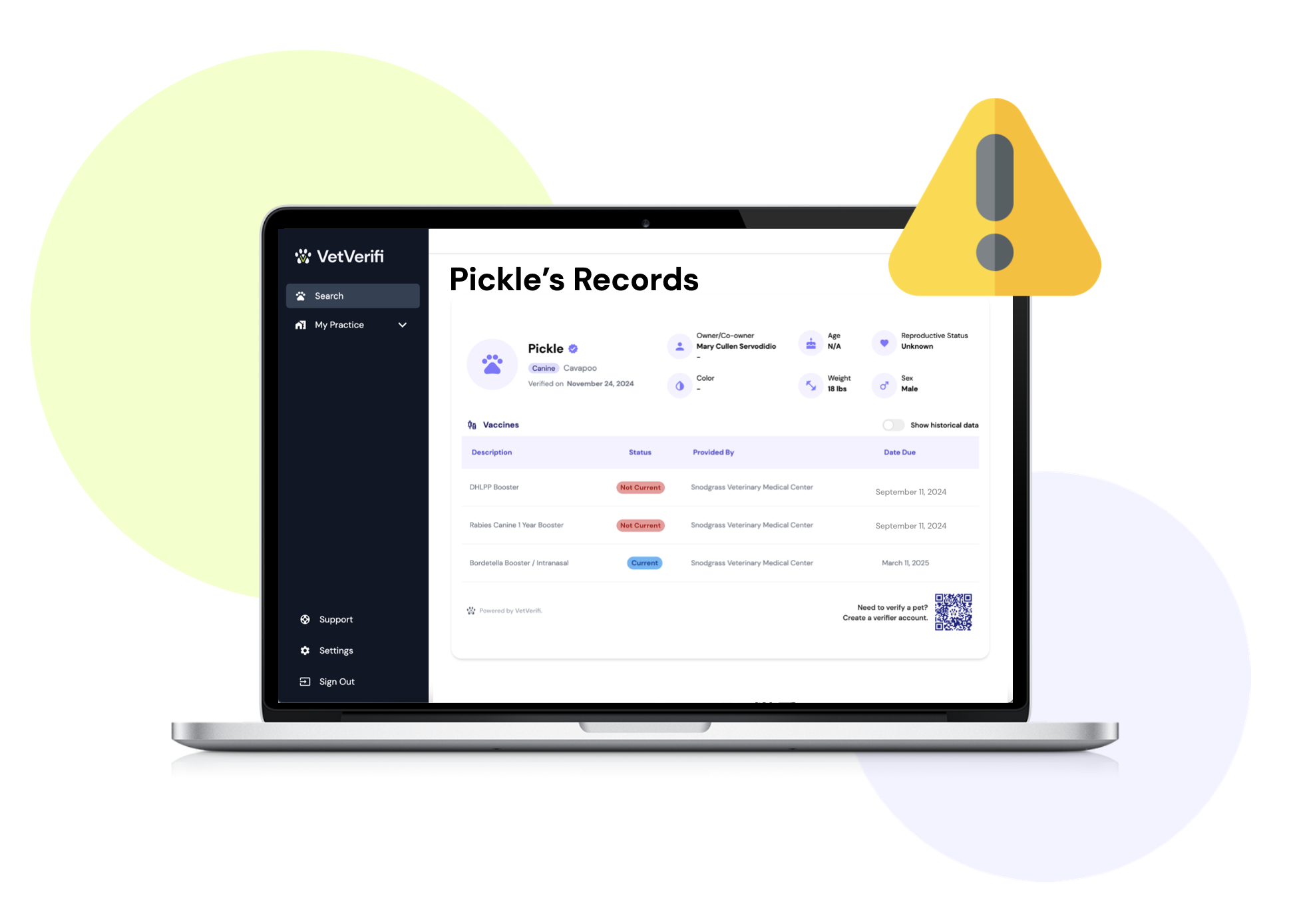 With one scan, anyone can instantly view your pet’s verified vaccine records — no apps, no accounts, no friction.